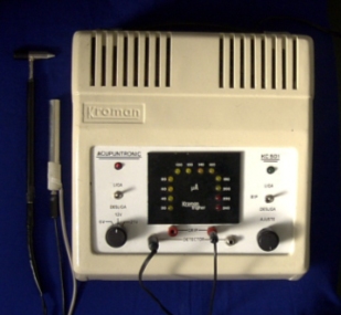 das mãos do aplicador. Modelo Acupuntronic, Marca Kroman, fabricado